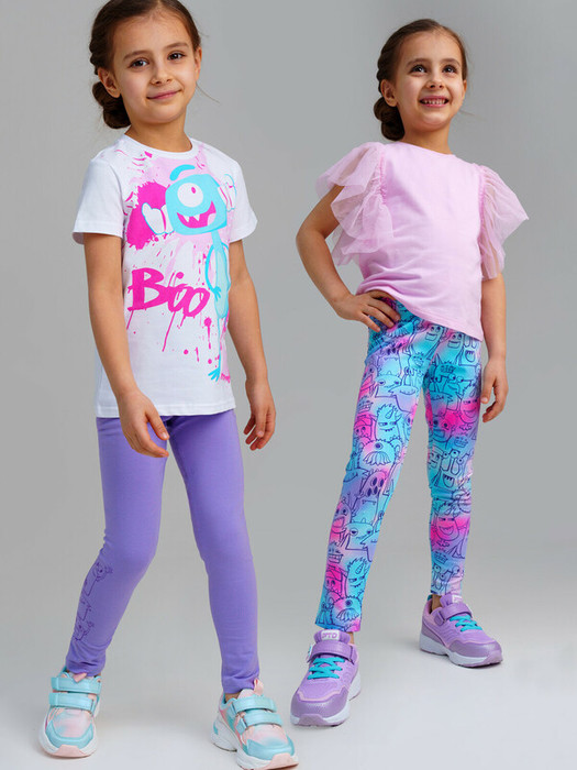 Набор детских леггинс для девочки. Леггинсы из качественного и приятного на ощупь трикотажа джерси. Высокое содержание хлопка 95%. Благодаря наличию эластана в составе ткани изделие держит форму и меньше мнется. По поясу резинка. Модель выполнена из качественного и приятного на ощупь трикотажа.