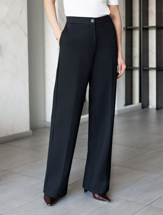 Прямые брюки выполнены из трикотажа джерси средней плотности. Модель дополнена боковыми карманами и поясом на резинке сзади. Заутюженные стрелки визуально вытягивают силуэт. Изделие хорошо держит форму, отлично тянется и почти не мнется во время использования. Идеальный вариант в офис или в повседневный классический стиль.