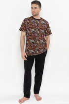Брюки мужские с карманами на молнии, на замках молний висит брелок. Ткань в рисунок, под карманом надпись - наклейка. Брюки на манжете, пояс со шнурком