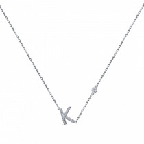 Колье с фианитом родированное серебро 925*