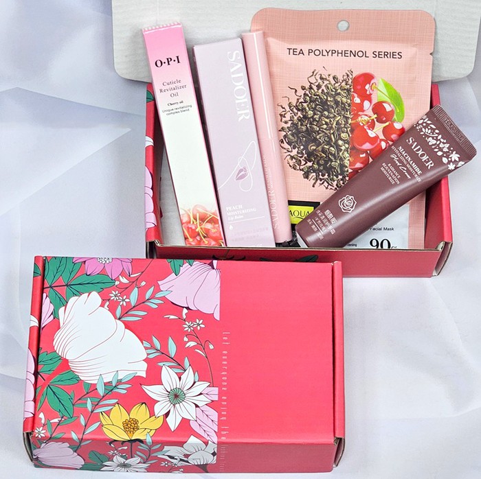 Совместные покупки Курган Косметика и парфюмерия Прочий макияж — Бьюти-бокс мини Красный с цветами (Крем для рук, Бальзам для губ, Маска, Масло д