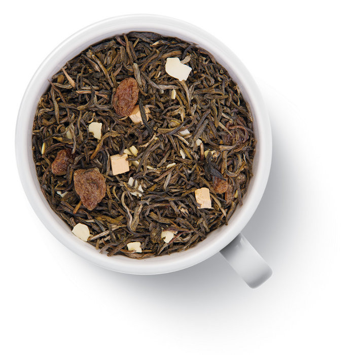 Краткое описание: Смесь зеленого китайского чая, кишмиш, капельки белого шоколада, кусочки карамели, ароматические масла. Чай ароматизирован натуральными маслами.