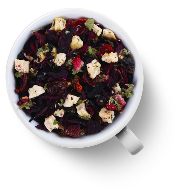 Краткое описание: Лепестки гибискуса, розы, листья и ягоды черники, садовой бузины, кусочки клубники, черная смородина, гранулированная малина. Сливочно-малиновый-барбарисовый аромат. Напиток ароматизирован натуральными маслами.