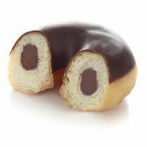 Насыщенный шоколадом слой брауни с воздушным муссом из молочного шоколада, шоколадным бисквитом, покрыт темным шоколадом.