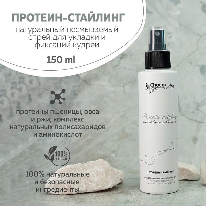 Натуральный несмываемый спрей ПРОТЕИН-СТАЙЛИНГ создает невесомую полисахаридную пленку на поверхности волос, которая обеспечивает формирование структурированных локонов, длительную фиксацию укладки и защиту волос от негативного воздействия окружающей среды.