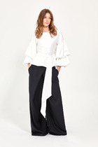 Блузка из атласного полотна, с втачным длинным рукавом. Низ рукава обработан притачным манжетом с застежкой на 1 пуговицу. На груди вытачки. Горловина с вырезом ""капелька"" с завязкой на бант. Низ изделия полукруглый.