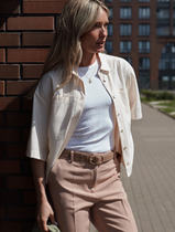 Футболка прямого силуэта из трикотажного полотна интерлок. Короткий втачной рукав. Округлая горловина с обтачкой. По левой линии плеча фигурный вырез с окантовкой.