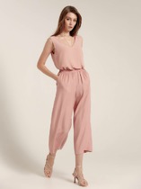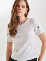 Блузка из вискозного трикотажного полотна пике свободного силуэта. Короткий втачной рукав. По горловине отложной воротник с внутренней обтачкой. Спереди имитация борта с внутренней обтачкой, по низу бант завязка.
