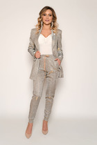 Лосины прилегающего силуэта из трикотажного полотна "джерси". По талии отрезной пояс. По спинке кокетка с накладными карманами. Спереди нефункциональные карманы и ложный гульфик. По деталям двойная отстрочка.