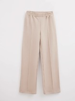 Брюки прямые спортивные из трикотажного полтна футер. По талии притачной пояс на внутренней резинке. Боковые карманы с отрезным бочком. Боковые швы переходят на перед.