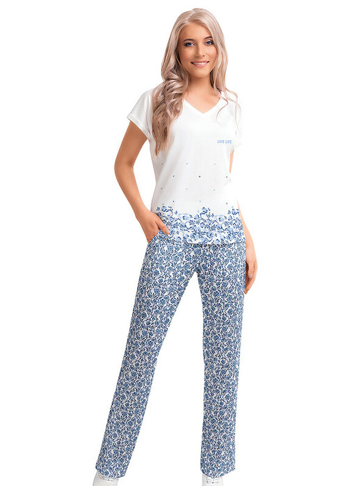 Clever Брюки женские для дома CLE LTR29-752/2 молочный/св.голубой