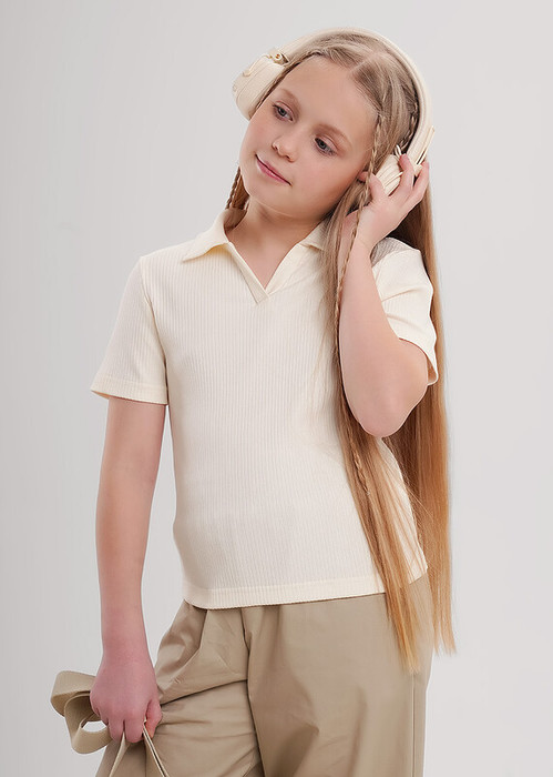 Базовый джемпер из лапши с коротким рукавом, отложным воротником и планкой. Классический джемпер отлично подойдет для создания повседневных образов, хорошо сочетается с брюками, юбками и повседневными джинсами.
