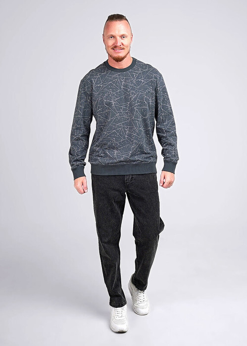 Стильный мужской джемпер из хлопкового трикотажного полотна в геометрическию набивку. Изделие с круглым вырезом горловины и длинным двухшовным рукавом на манжете.Отличный вариант на каждый день и встреч с друзьями.