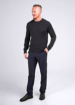 Мужской джемпер из футера среднего объема с круглым вырезом горловины из кашкорсе и спущенным рукавом на манжете. Изделие дополнено стильным новогодним принтом.