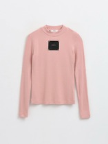 Джемпер объёмный из поливискозного трикотажного полотна джерси. Спущенный длинный рукав. По горловине стойка с молнией по спинке. По переду и спинке средний шов. По низу изделия потайной стежок. Спереди нашивка металл.