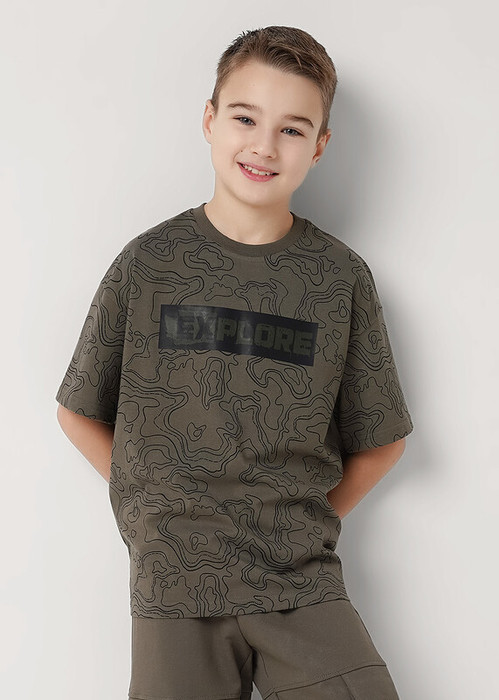 Совместные покупки Курган Детская одежда Футболки, майки — Clever Футболка детская для мальчика CLE 865756/12кдн_п т.хаки/чёрный