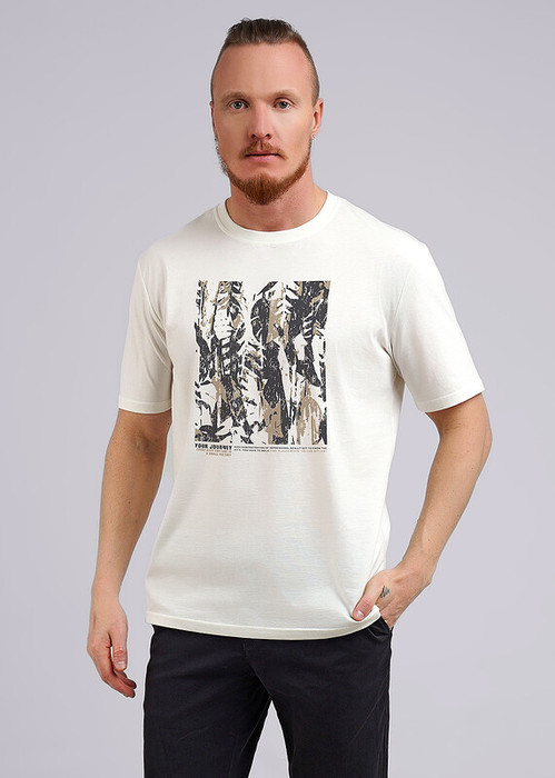 Футболка с округлой горловиной из дышащего хлопкового полотна . Интересное звучание модели придаёт дизайнерский абстрактно -растительный принт. Данная модель прекрасно впишется в любой гардероб и станет отличным дополнением к брюкам или джинсам.