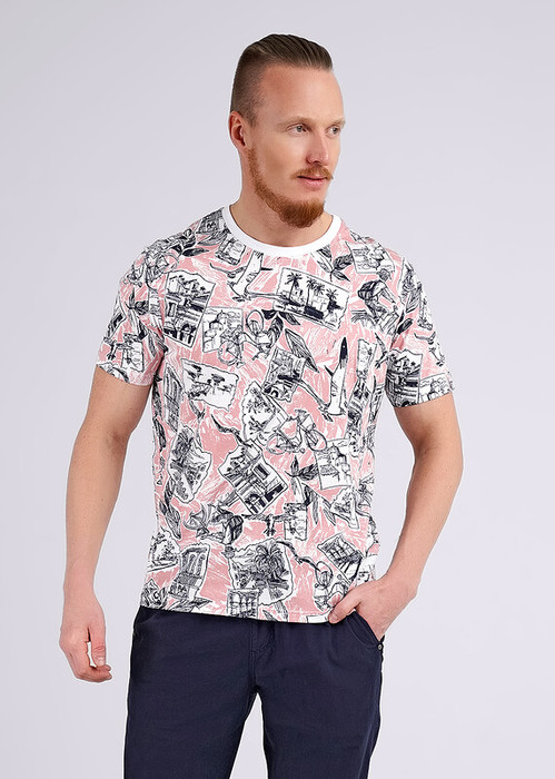 Модная мужская футболка с круглым вырезом горловины из приятного хлопкового полотна в яркую набивку . Модель отлично подойдет для отдыха и встреч с друзьями.