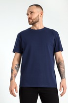 Футболка мужская из дышащего хлопкового полотна. Модель с контрастным круглым вырезом горловины и манжетами. Прекрасно сочетается с джинсами или шортами. Дополнена принтом.