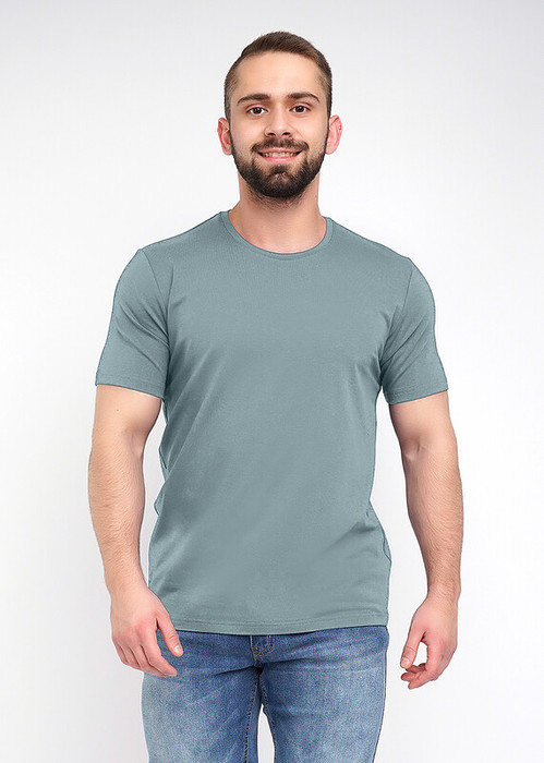 Базовая однотонная футболка стандартного объема с круглой горловиной, втачным рукавом из хлопкового полотна с добавлением эластана. Является неотъемлемой частью мужского гардероба.