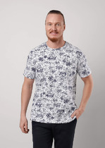 Футболка мужская с округлой горловиной и планкой из фактурного полотна флам. Данная модель прекрасно комбинируется с джинсами или шортами. Модель дополнена имиджевой фурнитурой. Отличное решение на лето для прогулок с друзьями или поездки на отдых.