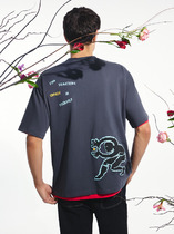 Футболка из дышащего хлопкового трикотажного полотна с небольшим добавлением эластана для прочности, круглым вырезом горловины и коротким рукавом. Модель дополнена оригинальным авторским принтом.