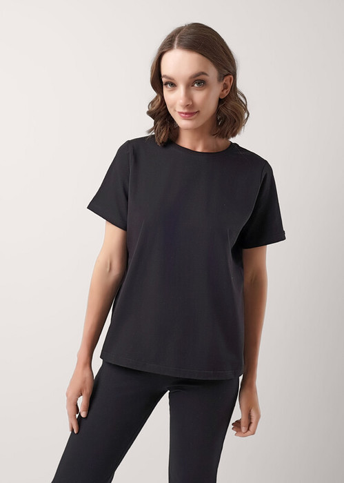 Футболка женская из эластичного хлопкового полотна. Круглая горловина. Короткий рукав.