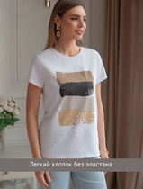 Джемпер умеренного объема из хлопкового трикотажного полотна. Втачной короткий рукав. Округлая горловина с окантовкой.