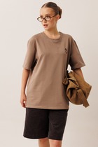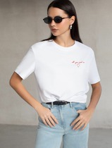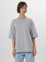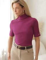 Джемпер прямого силуэта из хлопкового трикотажного полотна. Слегка спущенный короткий рукав. Округлая горловина с обтачкой.