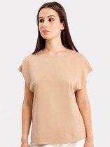 Джемпер умеренного объема из хлопкового трикотажного полотна -рибана. Втачной короткий рукав. Округлая горловина с окантовкой.