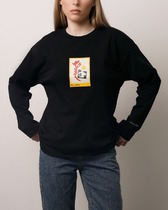 Джемпер укороченный из эластичного футера 2х нитки. Короткий спущенный рукав. Круглый вырез горловины. По переду термоапликация из флока.