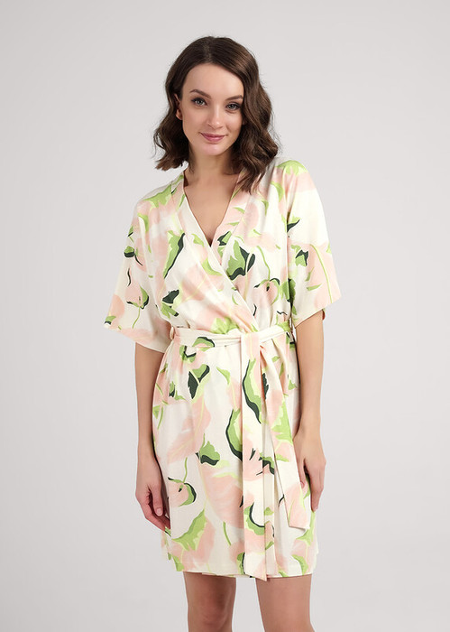 Clever Халат женский CLE LX25-1111 персиковый/св.зелёный