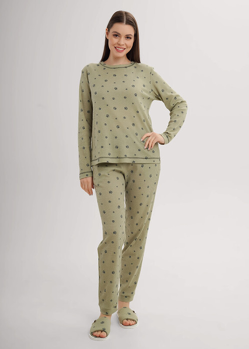 Набор одежды из трикотажного полотна ""вафелька"". Фуфайка прямого силуэта.По горловине обтачка. Втачной длинный рукав. По горловине,низу изделия и рукавов застил. Брюки с притачным поясом на внутренней резинке. Боковые карманы в швах. По низу брюк манжет.