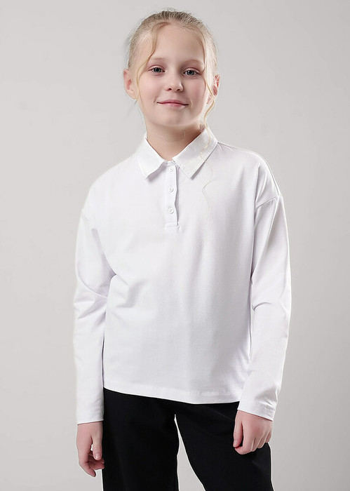 Базовое поло является неотъемлемой частью школьного гардероба! Модель с отложным воротником из поплина и планкой на пуговицах. Поло выполнено из хлопкового полотна с добавленем эластана. Создавай классные повседневные или школьные образы и будь в тренде!
