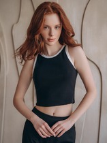 Майка из хлопкового трикотажного полотна рибана. Умеренный объем. Широкая бретель, округлая горловина. По горловине и пройме окантовка.
