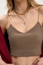 Приталенная майка классической длины на тонких бретелях, декорирована кружевом по переду