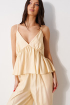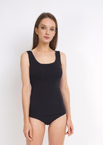 Майка из эластичного вискозного полотна. Широкая бретель. Круглая горловина. Обработка краев - открытый срез.