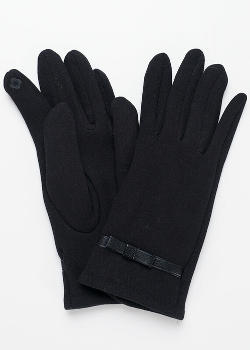 Женские перчатки из трикотажного полотна имитирующего внутри искусственный мех, декорированы кожанным ремешком на запястье, на большом и указательном пальцах вышивка ""сенсорными"" нитками, размер 18.