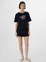 Набор одежды из хлопкового трикотажного полотна. Футболка прямого кроя, короткий втачной рукав, округлая горловина с обтачкой. Спереди принт. Внизу нашивка. Бриджи с поясом на внутренней резинке. Боковые карманы с отрезным бочком.