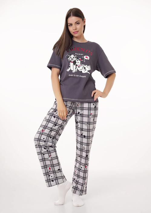 Clever Пижама женская CLE LP15-1187/3 т.серый/св.серый