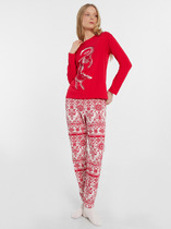 Пижама для дома из хлопкового трикотажного полотна с карбоном. Джемпер с длинным втачным рукавом. Застёжка на пуговицы, воротник с лацканами. По переду накладной карман, нашивка. Боковые разрезы. Брюки прямые, цельнокроенный пояс на внутренней резинке.