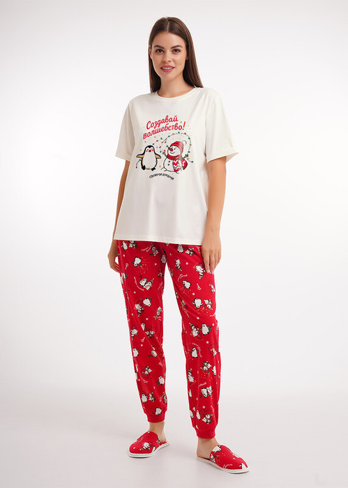 Совместные покупки Курган Женская одежда Пижамы, халаты — Clever Пижама женская CLE LP15-1202/2 молочный/красный