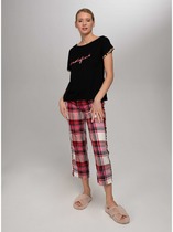 Набор одежды для дома и отдыха из трикотажного полотна. Футболка прямого силуэта из трикотажного полотна. Округлая горловина с обтачкой. Короткий втачной рукав. На полочке и спинке принт. Шорты с притачным широким поясом на резинке, принт.
