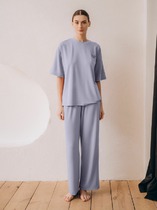 Пижама для дома из хлопкового трикотажного полотна. Майка прямого силуэта, на узких бретелях. По горловине и пройме окантовка. Короткие шорты свободного кроя, цельнокроеный пояс на внутренней резинке.