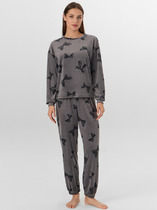 Пижама для дома из хлопкового трикотажного полотна с эластаном.Майка прямого силуэта, среднее плечо.По горловине и пройме окантовка с застилом, внизу нашивка.Короткие шорты с притачным поясом на внутренней резинке,спереди имитация гульфика с пуговицами.
