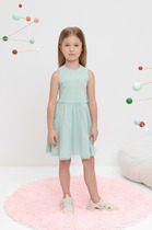 Нарядное двухслойное платье для девочки. Объемные рукава выполнены из сетки с узором. Нижний слой платья - из кулирки 100% хлопок, верхний слой - из сетки, как на рукавах. Сзади платья функциональная атласная лента.