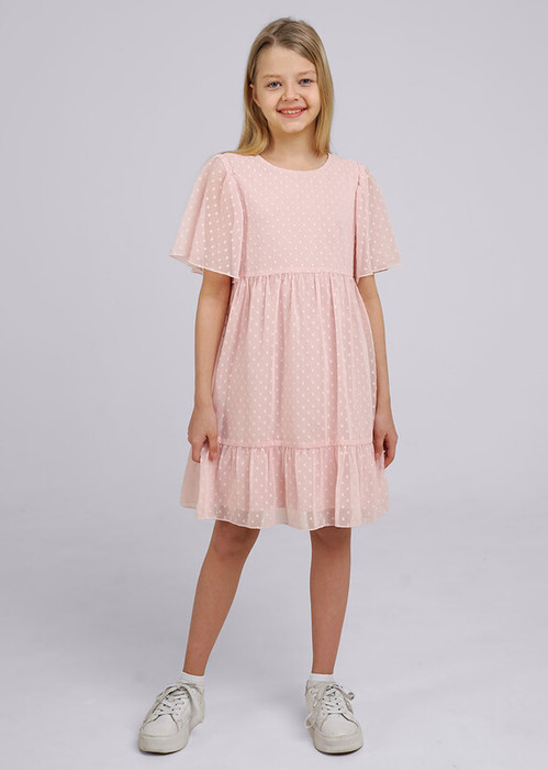 Нежное как зефир! Нарядное платье из невесомого шифона подчеркнет твою легкость и индивидуальность. Нижний слой выполнен из хлопкового трикотажа, верхний - из мягкого шифона. Для эффектных образов сочетай платье с нарядными балетками или босоножками.