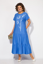 Платье полуприлегающего силуэта из трикотажного полотна с блеском. Округлая горловина. Длинный втачной рукав, по низу рукава разрезы. По переду рельеф со сборкой на резинку и разрезом. По спинке средний шов с застёжкой на молнию.