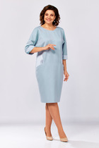 Платье прямого силуэта из трикотажного полотна рибана с вискозой. Длиной ниже колена. Округлая горловина с обтачкой. По переду и спинке вертикальные и горизонтальные защипы. Длинный втачной рукав.