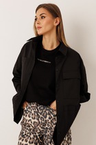 Блузка прямого силуэта из трикотажного полотна, с отложным воротником на стойке. Спереди цельнокроеная планка с застежкой на пуговицы. Длинный втачной рукав, внизу с притачной манжетой и застежкой на пуговицу. По спинке кокетка со складкой.